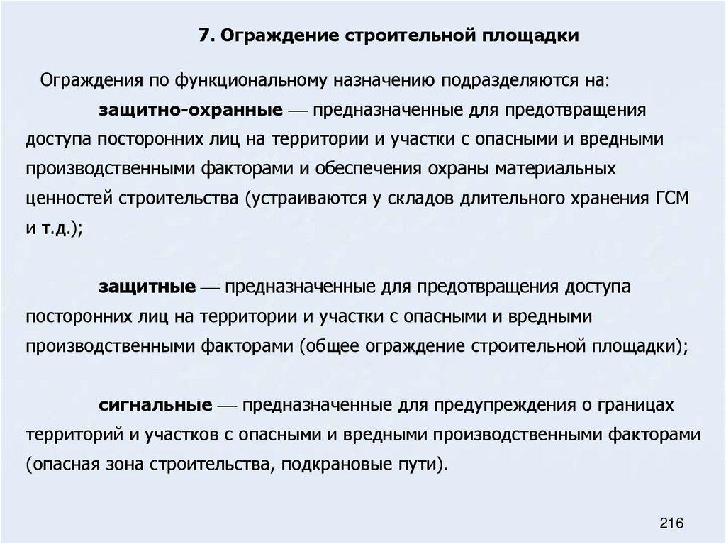 62. Основные требования предъявляемые к ограждениям на строительном генеральном