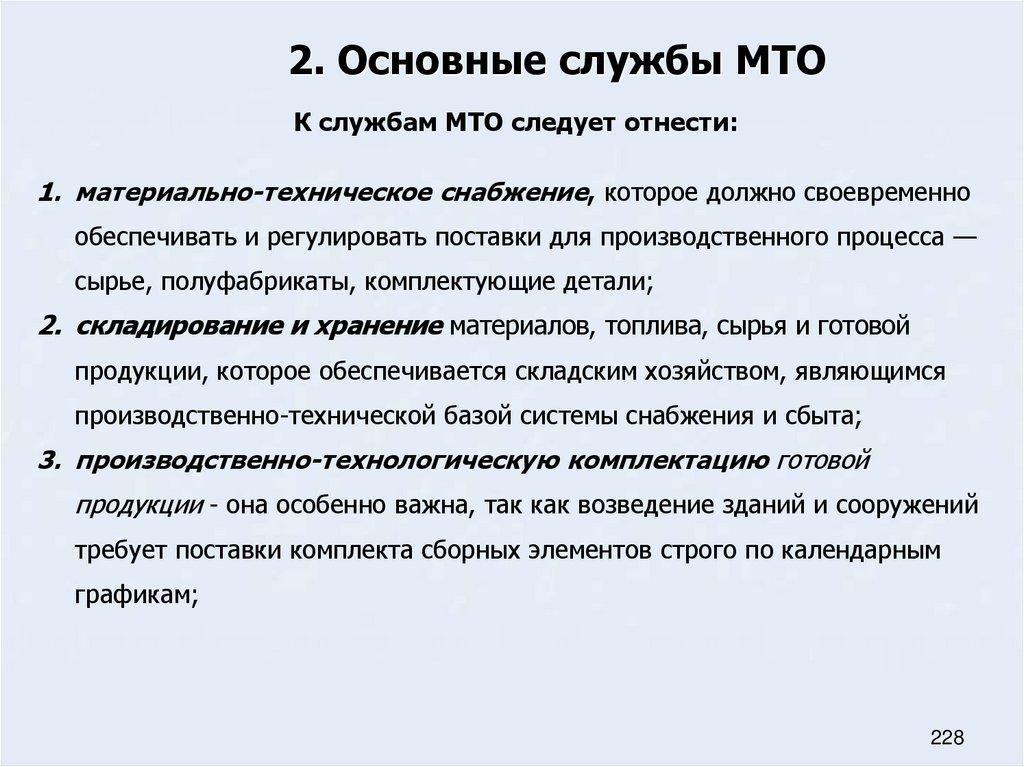 65. Основные службы материально-технического обеспечения