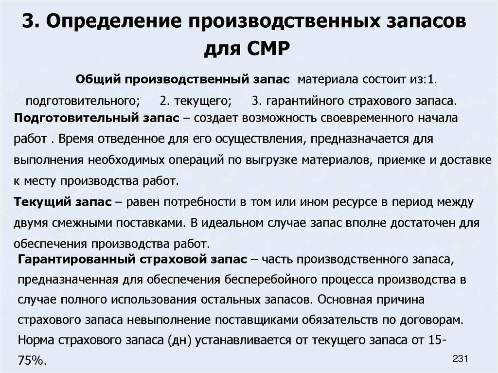66. Определение производственных запасов для производства строительно-монтажных