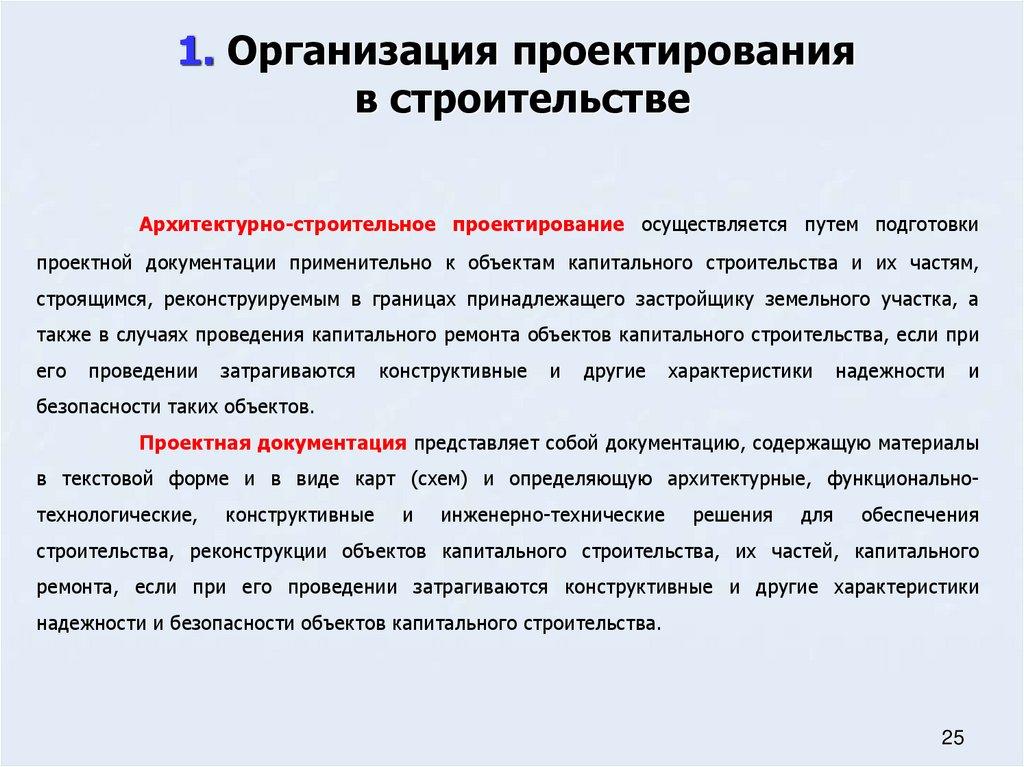Общие положения организации проектирования в строительстве