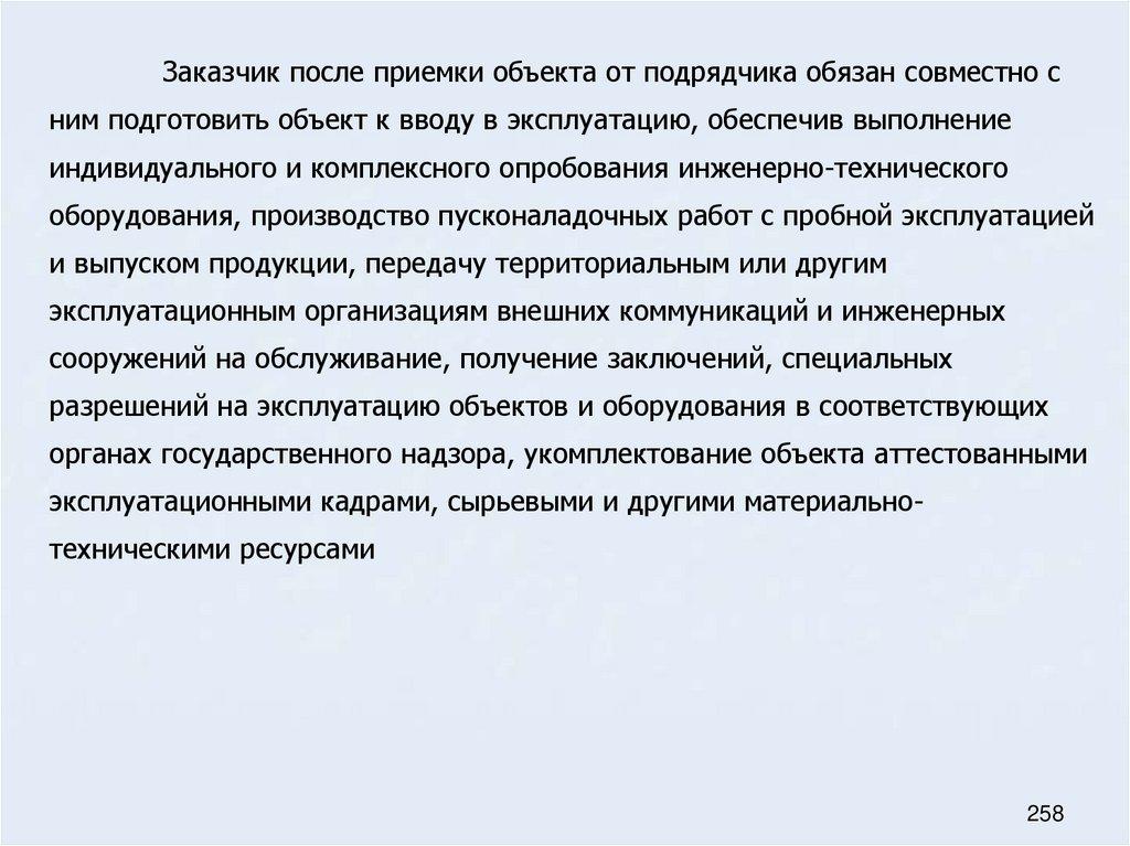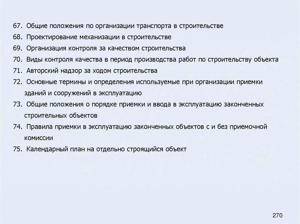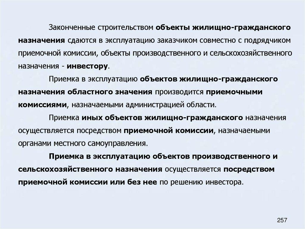 73. Общие положения о порядке приемки и ввода в эксплуатацию законченных