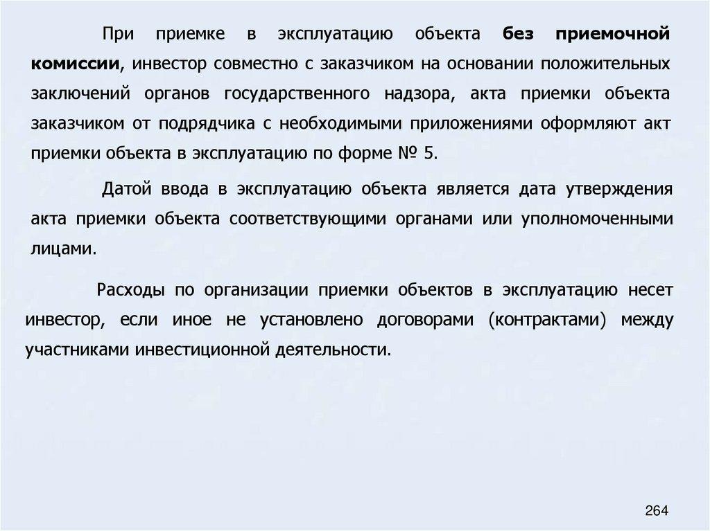 74. Правила приемки в эксплуатацию законченных объектов с и без приемочной