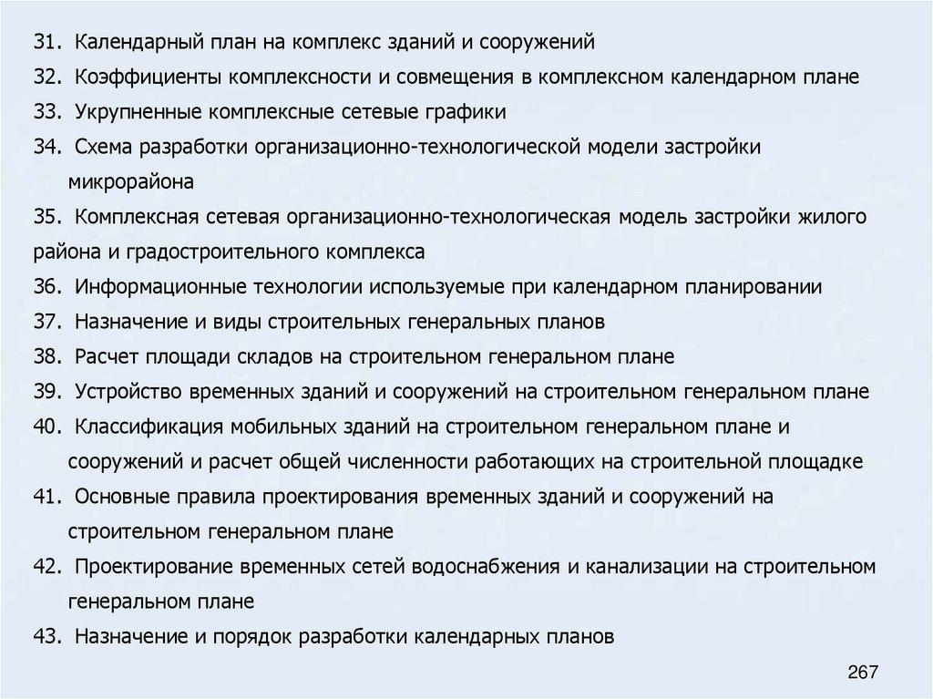 31. Календарный план на комплекс зданий и сооружений32. Коэффициенты комплексности и совмещения в комплексном календарном плане