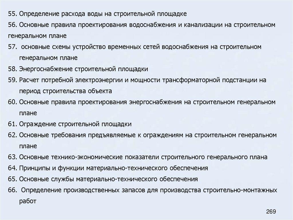 55. Определение расхода воды на строительной площадке56. Основные правила проектирования водоснабжения и канализации на строительном