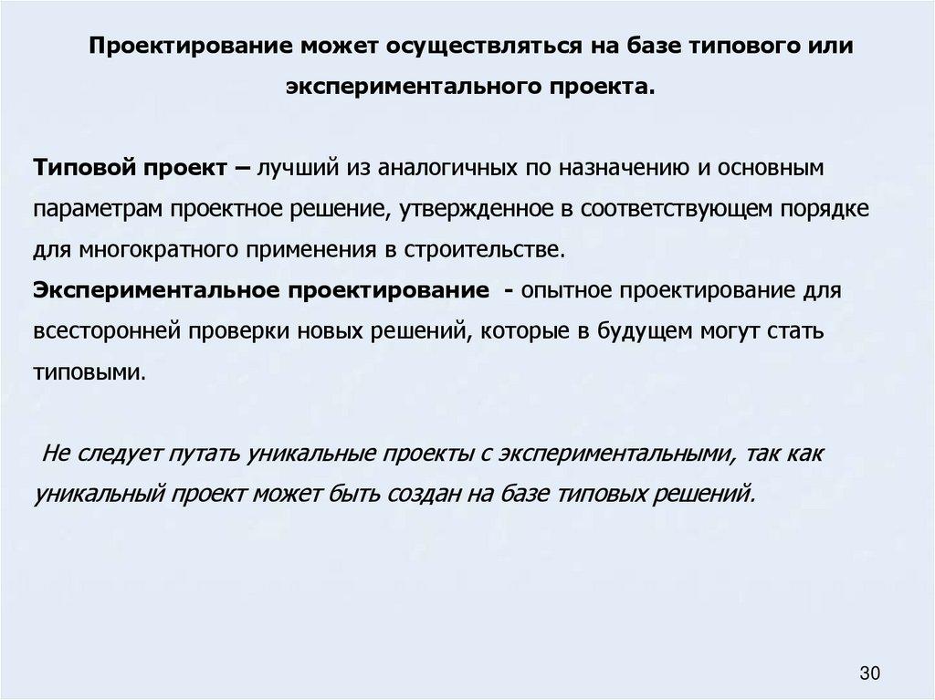 Типовое, экспериментальное проектирование и сравнение вариантов