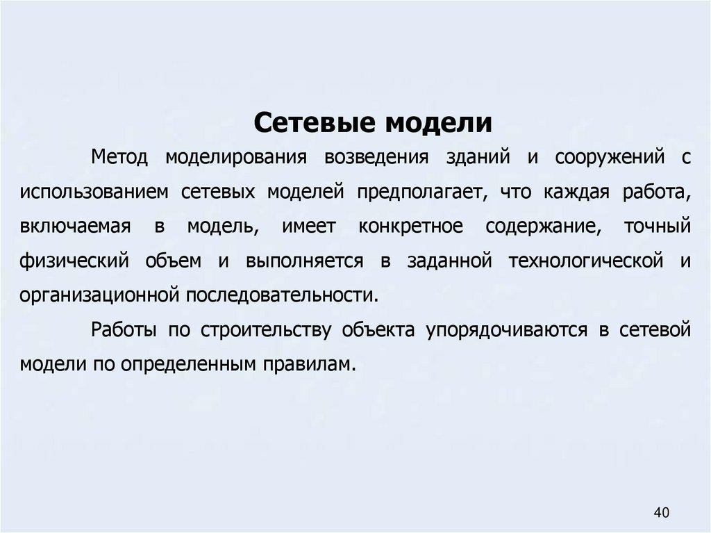 Сетевые модели применяемые в строительном производстве