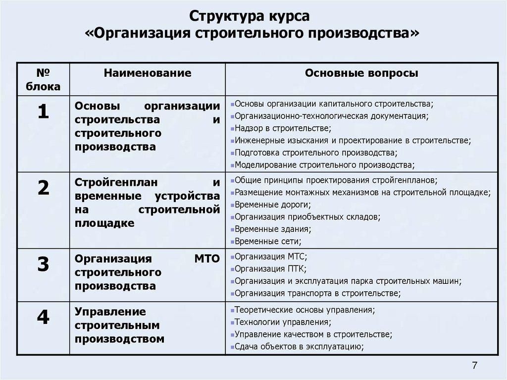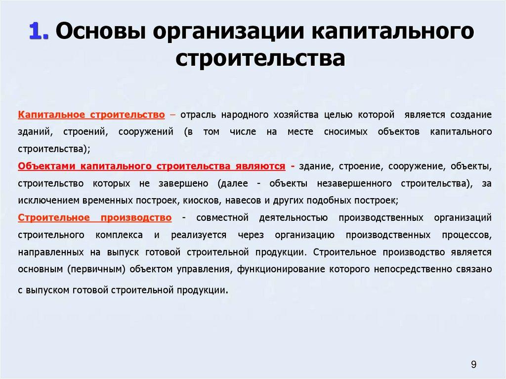Основные понятия организации строительства