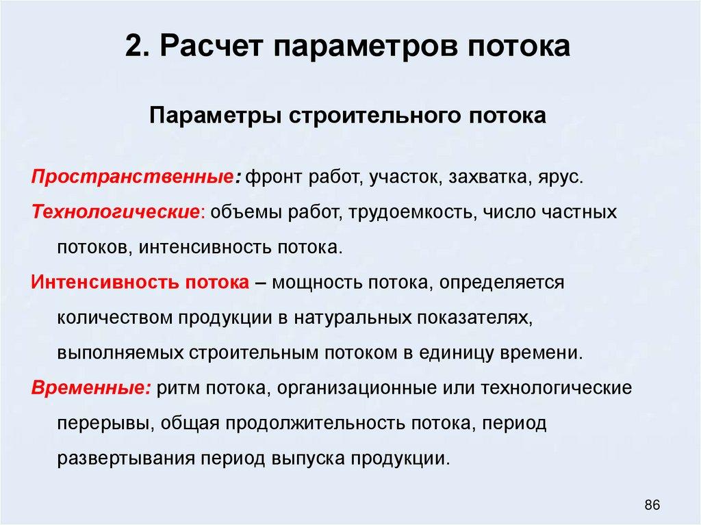 Расчет параметров потока