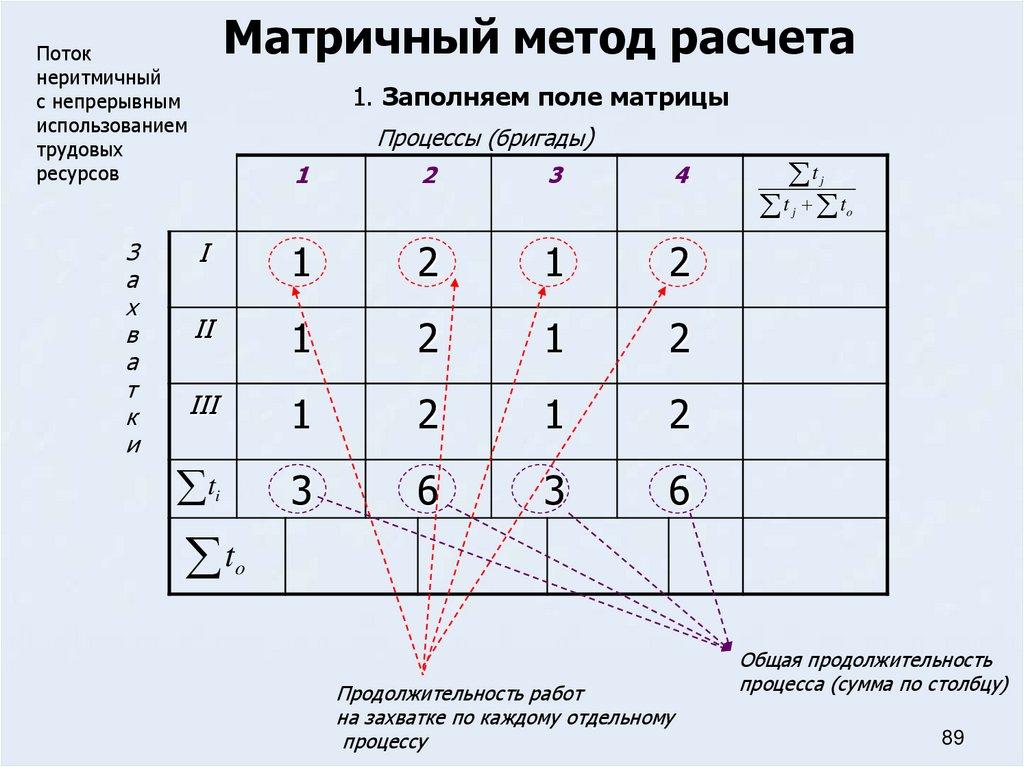 25. Матричный метод расчета параметров потока