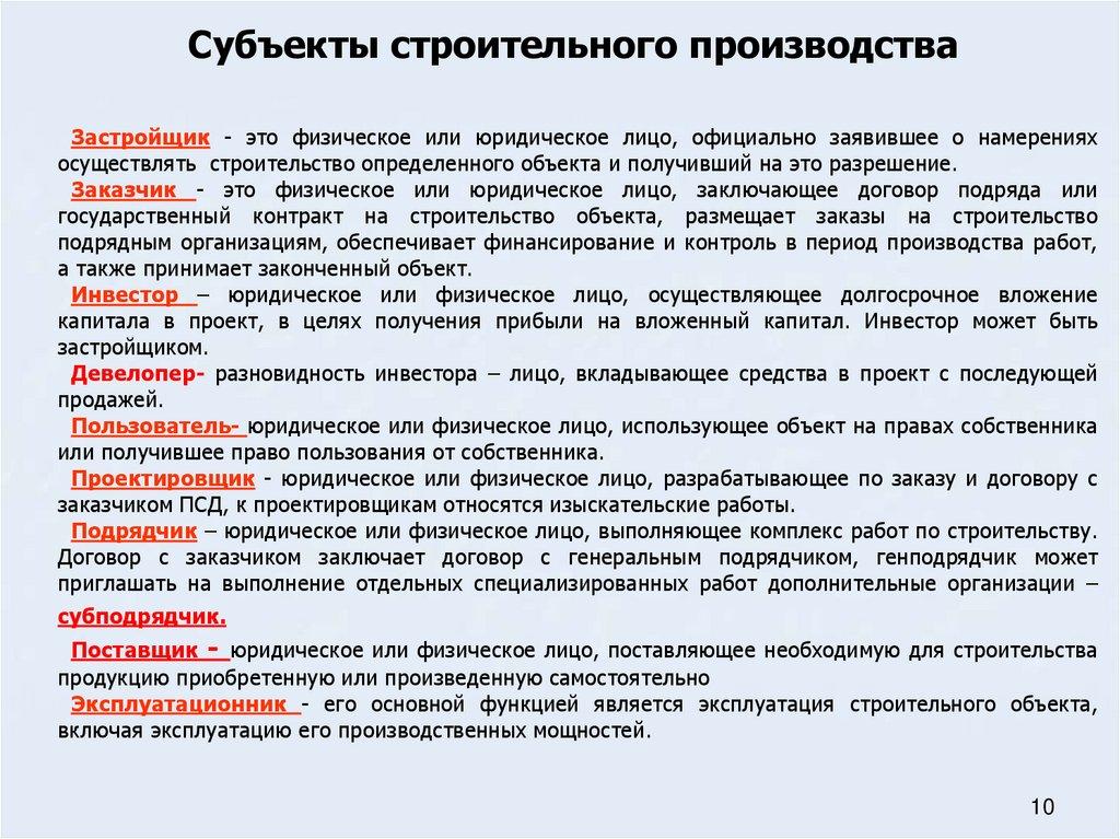 Основные субъекты строительного производства