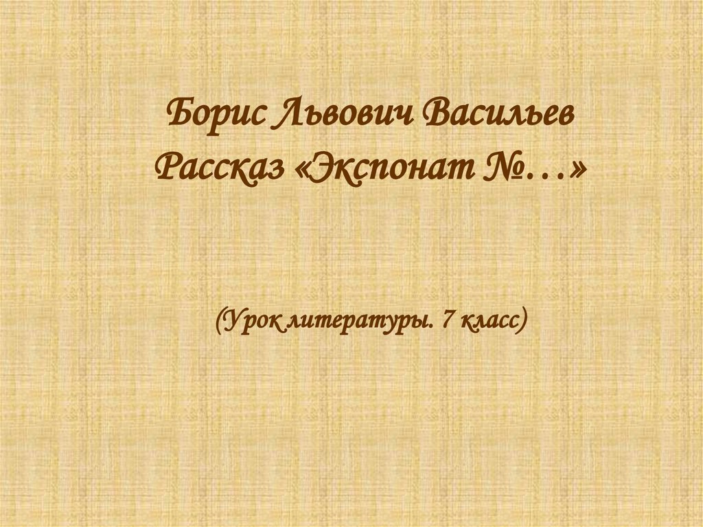 Борис Львович Васильев. Рассказ «Экспонат №…». Урок литературы. 7 класс