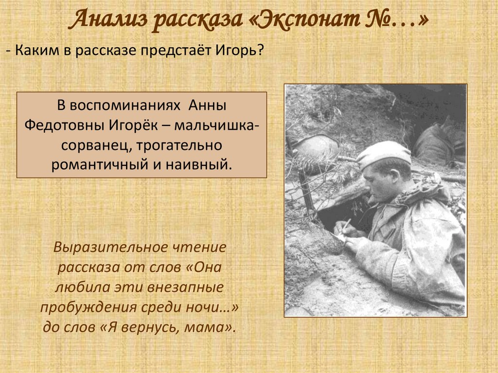Анализ рассказа «Экспонат №…»Дети у Бориса Васильева