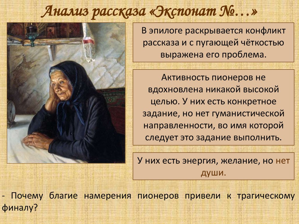 Анализ рассказа «Экспонат №…»В эпилоге раскрывается конфликт