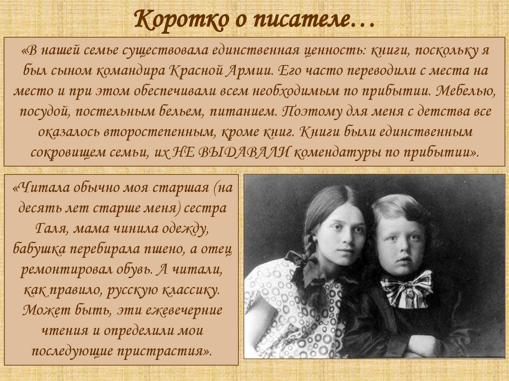 Коротко о писателе…«В нашей семье существовала единственная ценность: книги, поскольку я