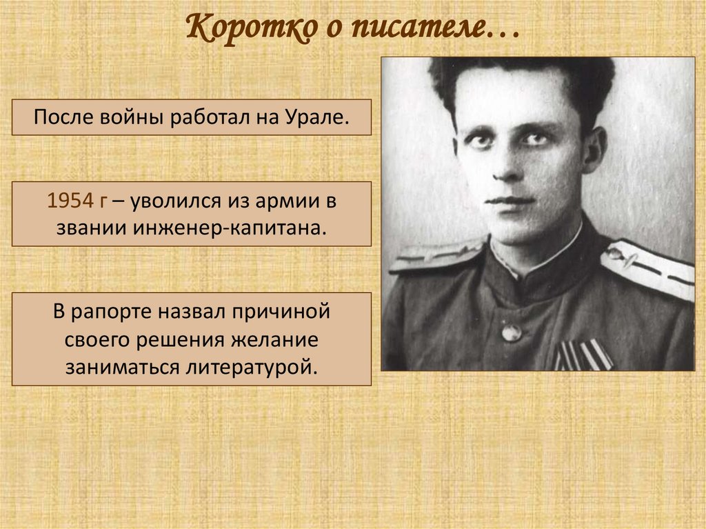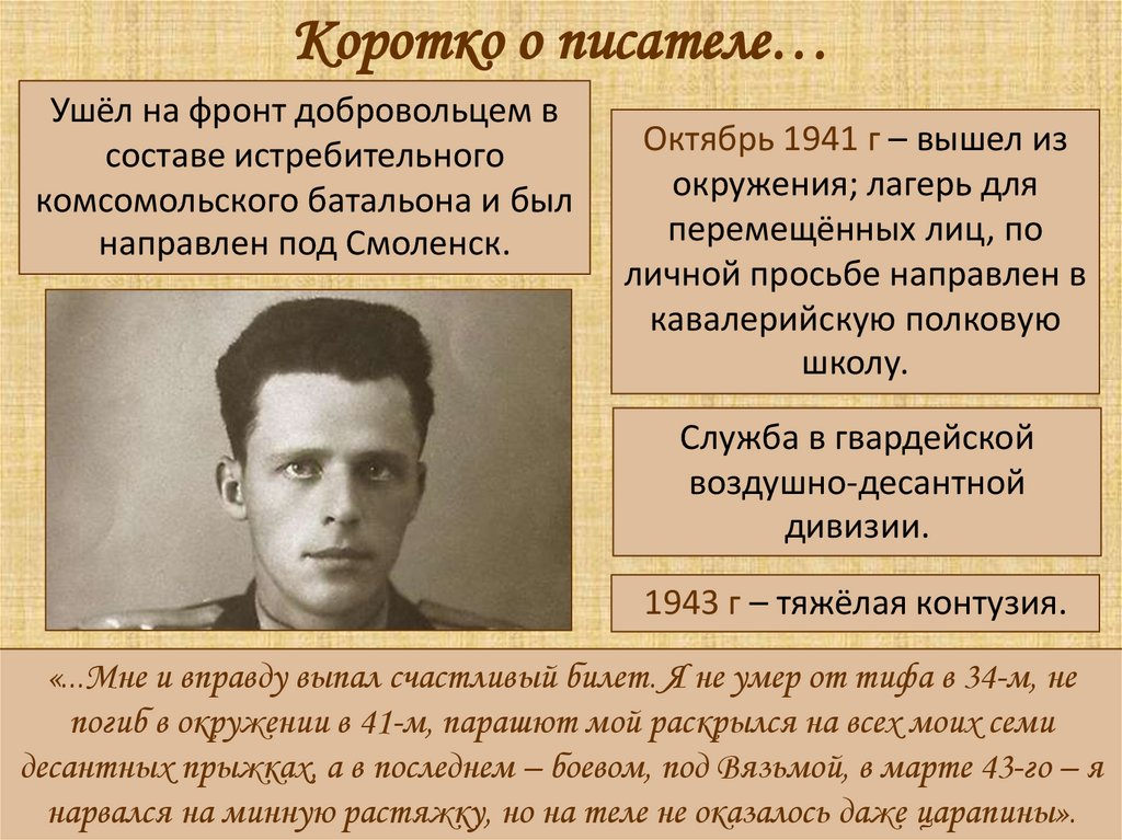 Коротко о писателе…Ушёл на фронт добровольцем в
