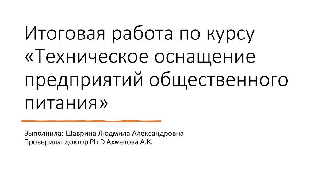 Итоговая работа по курсу «Техническое оснащение предприятий общественного питания»