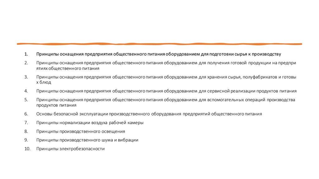 1.Принципы оснащения предприятия общественного питания оборудованием для подготовки сырья к производству