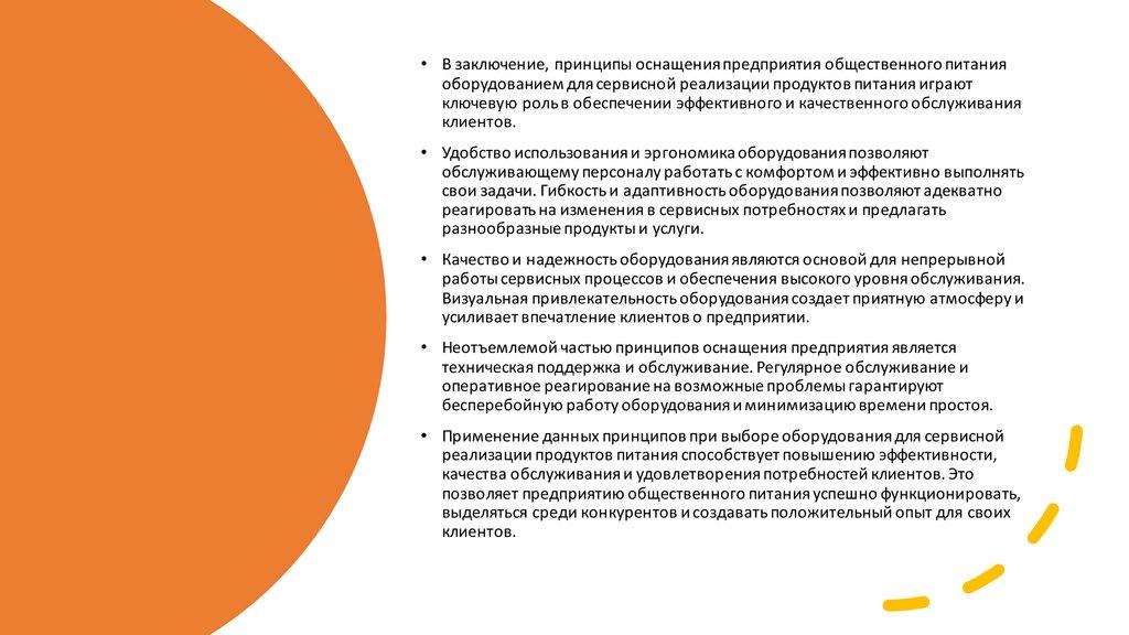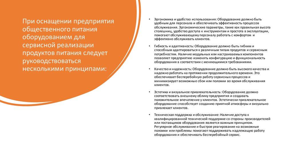 Принципы оснащения предприятия общественного питания оборудованием для сервисной реализации продуктов питания