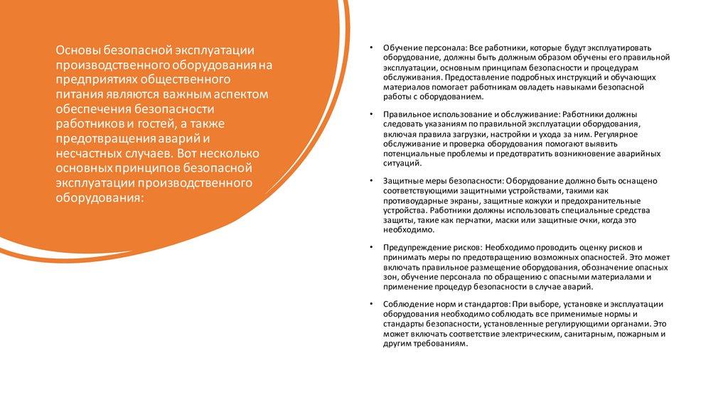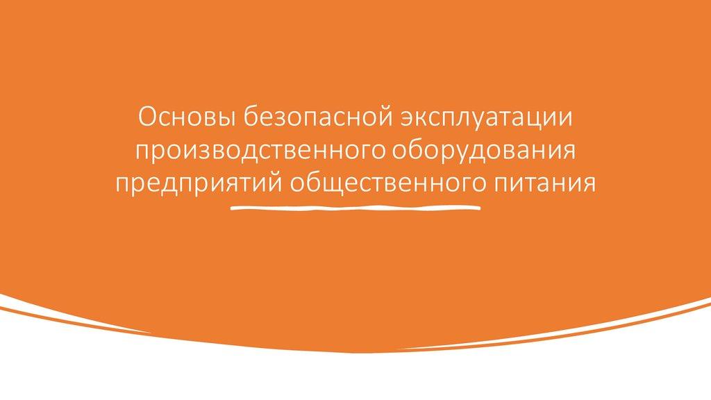Основы безопасной эксплуатации производственного оборудования предприятий общественного питания
