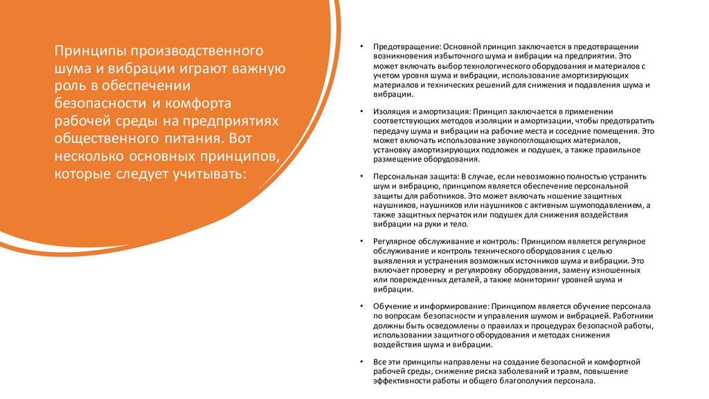 • В заключение, принципы производственного шума и вибрации являютсяважными аспектами обеспечения безопасности и комфорта на предприятиях