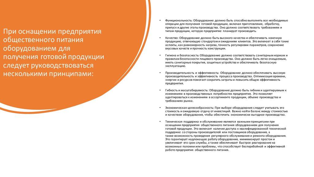 Принципы оснащения предприятия общественного питания оборудованием для получения готовой продукции на предпри