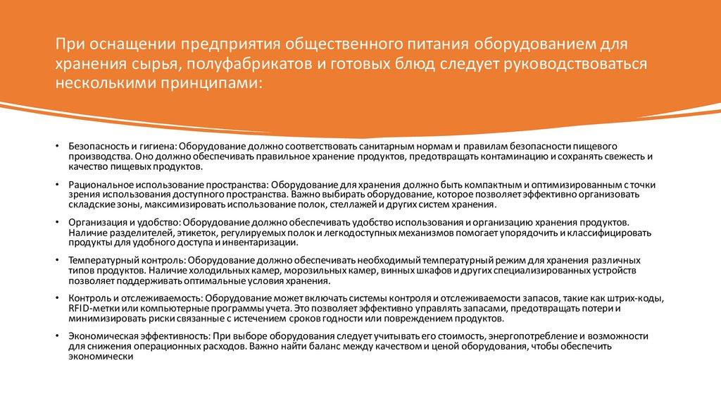 Принципы оснащения предприятия общественного питания оборудованием для хранения сырья, полуфабрикатов и готовы