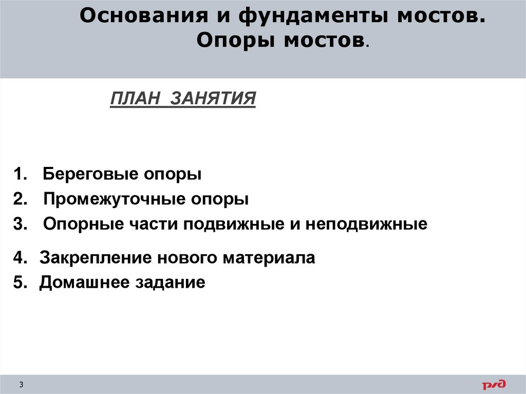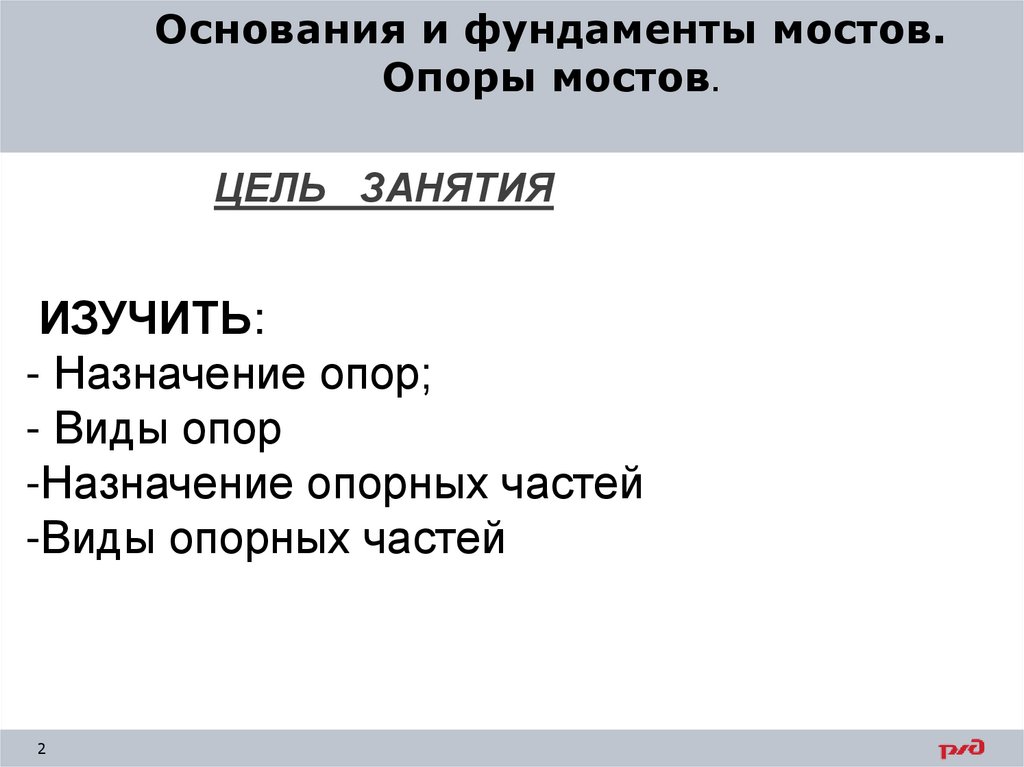 ТЕМА №3: «Опоры мостов»Занятие № 5 «Опоры и опорные части»