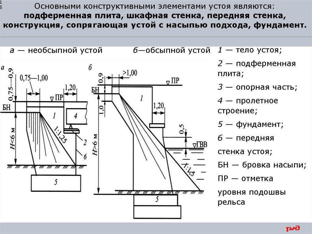 устои подразделяются на:необсыпные, длина которых не менее длины