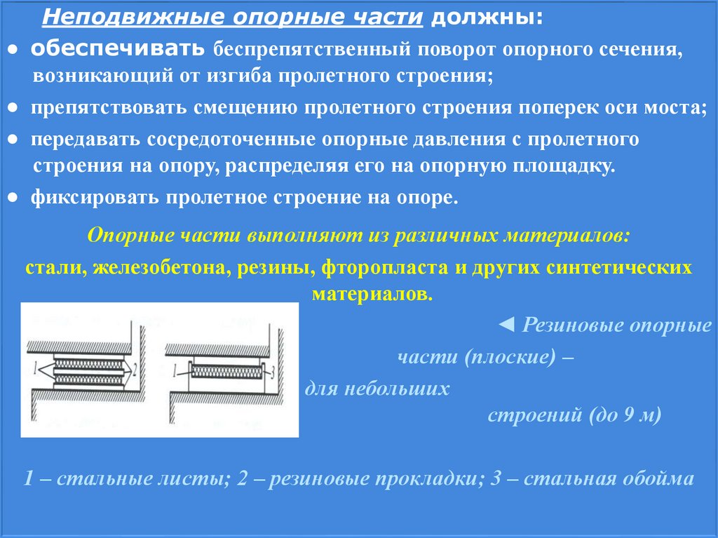 Неподвижные опорные части должны:● обеспечивать беспрепятственный поворот опорного сечения,