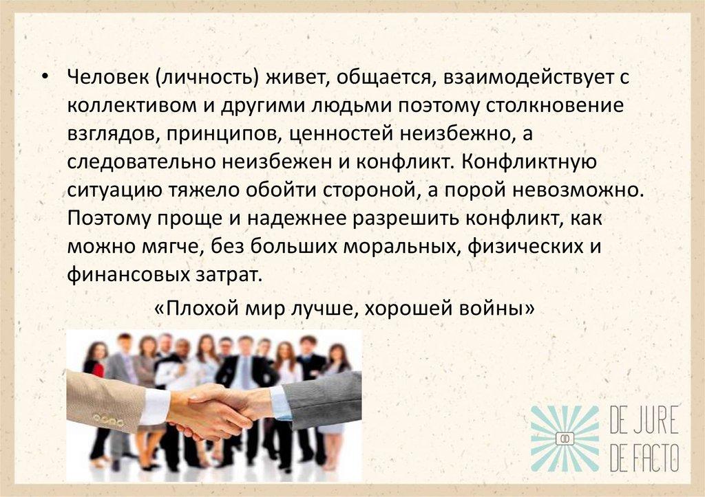 • Человек (личность) живет, общается, взаимодействует сколлективом и другими людьми поэтому столкновение