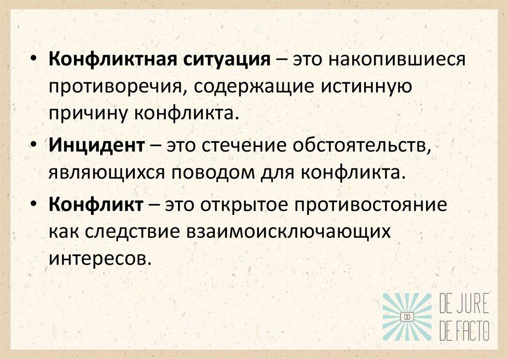Конфликтная ситуация + Инцидент = КонфликтРазрешить конфликт – это значит: