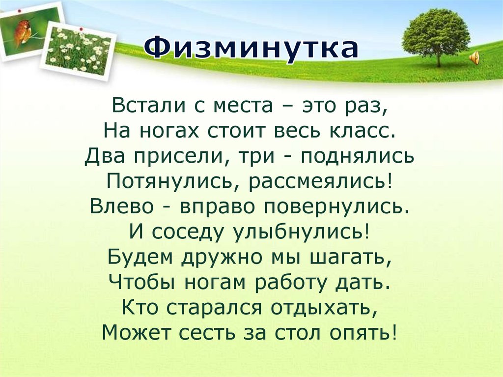 Встали с места – это раз,На ногах стоит весь класс.