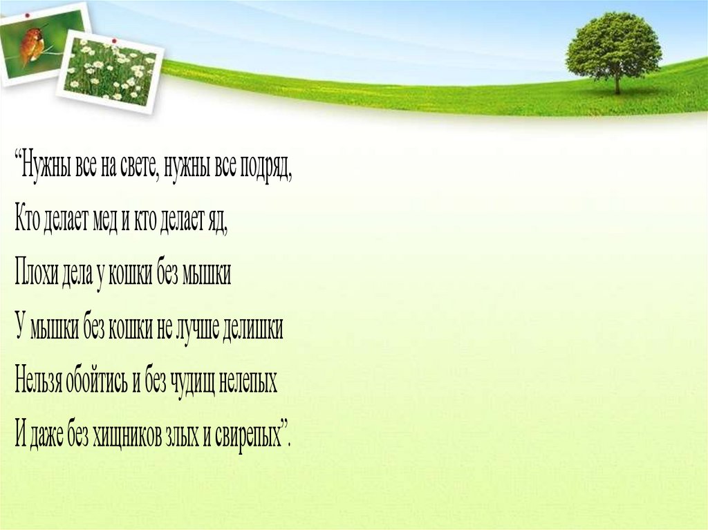И даже без хищников злых и свирепых”.