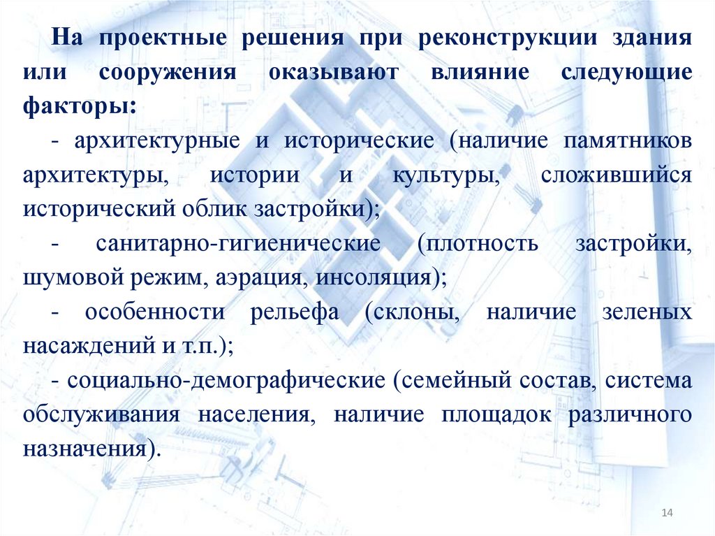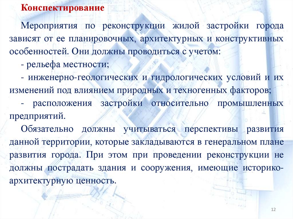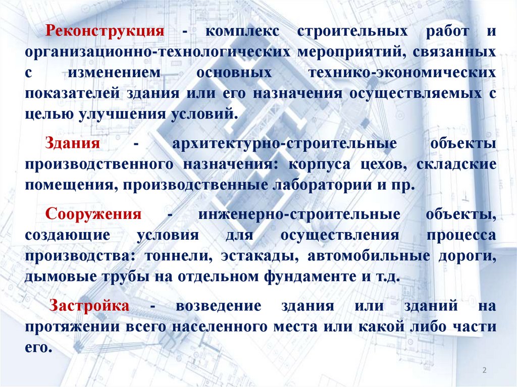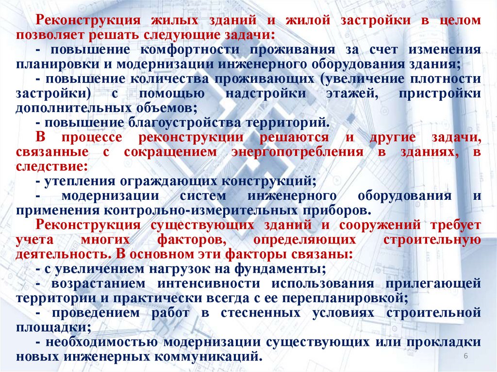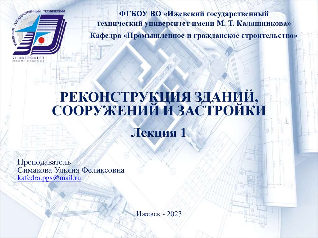Реконструкция зданий, сооружений и застройки. Лекция 1