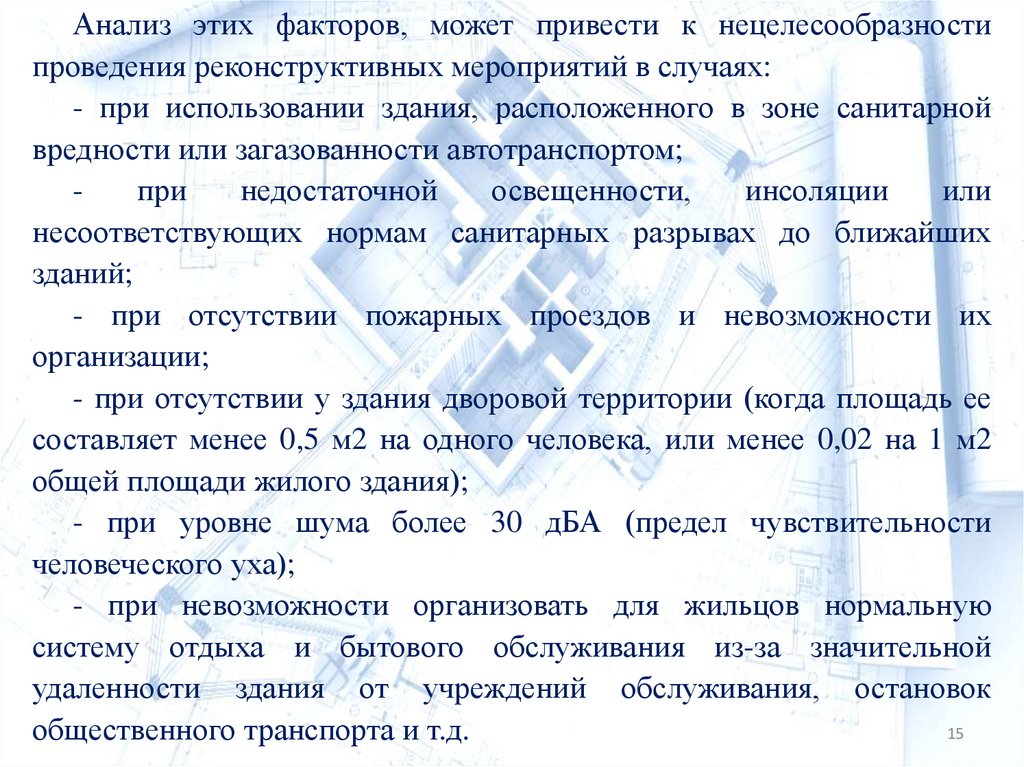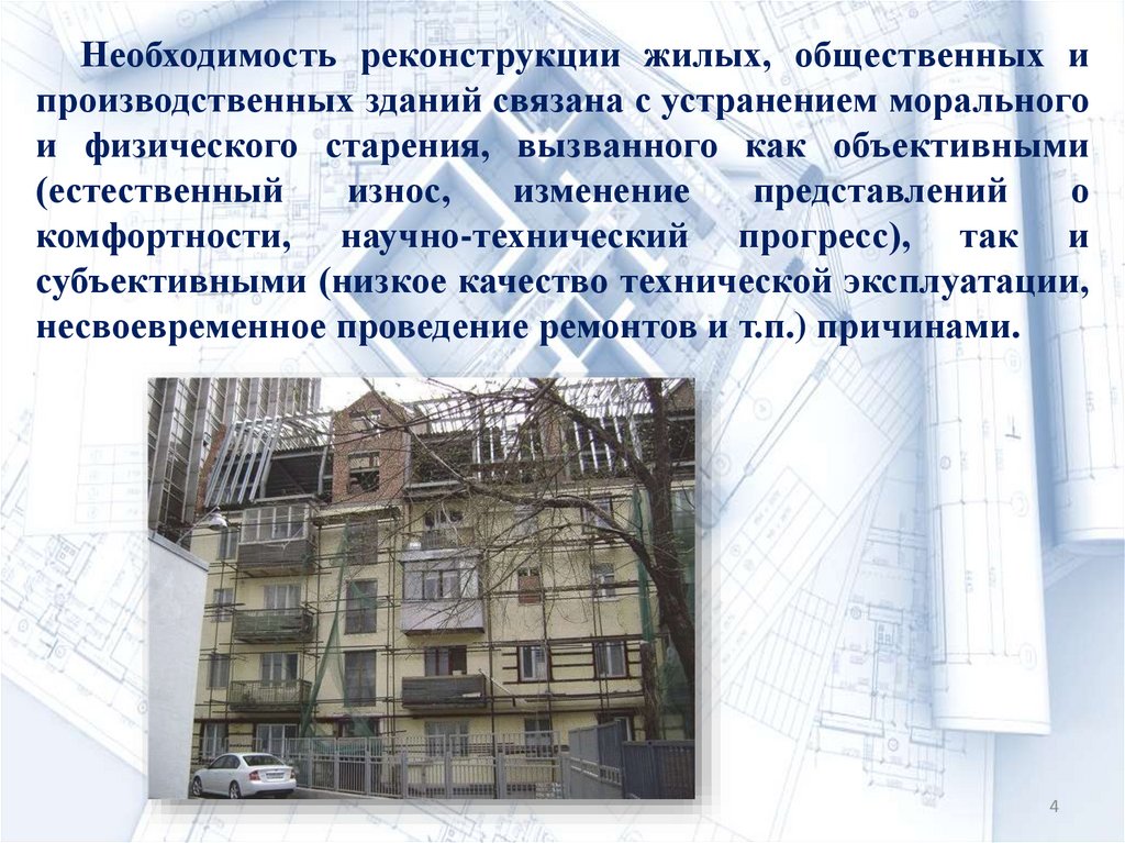 Необходимость реконструкции жилых, общественных ипроизводственных зданий связана с устранением морального