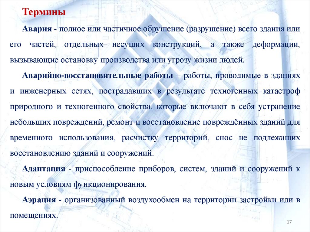 Аварийно-восстановительные работы – работы, проводимые в зданиях