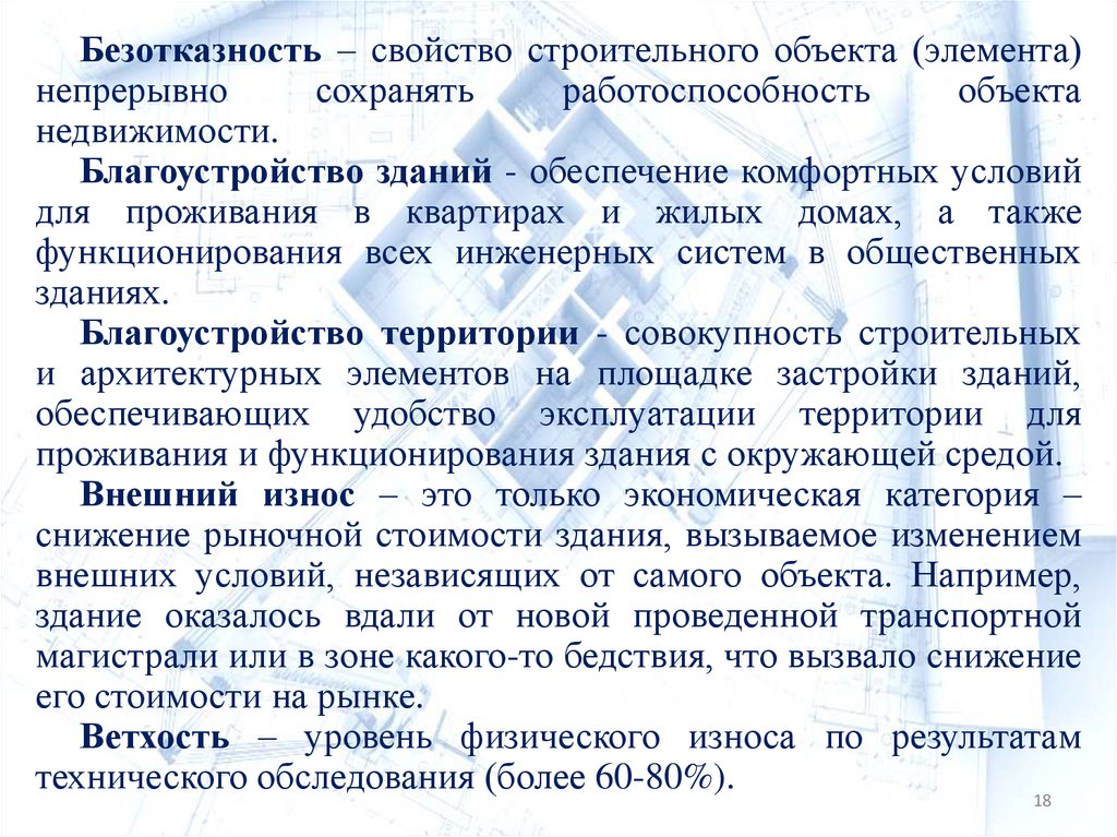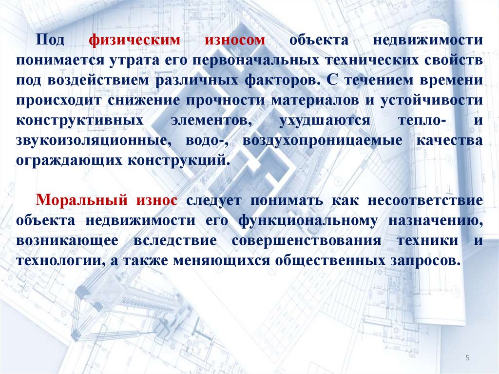 Под физическим износом объекта недвижимостипонимается утрата его первоначальных технических свойств
