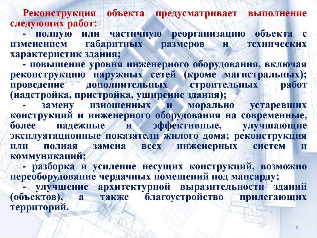 РЕКОНСТРУКЦИЯ ЗДАНИЙ,
