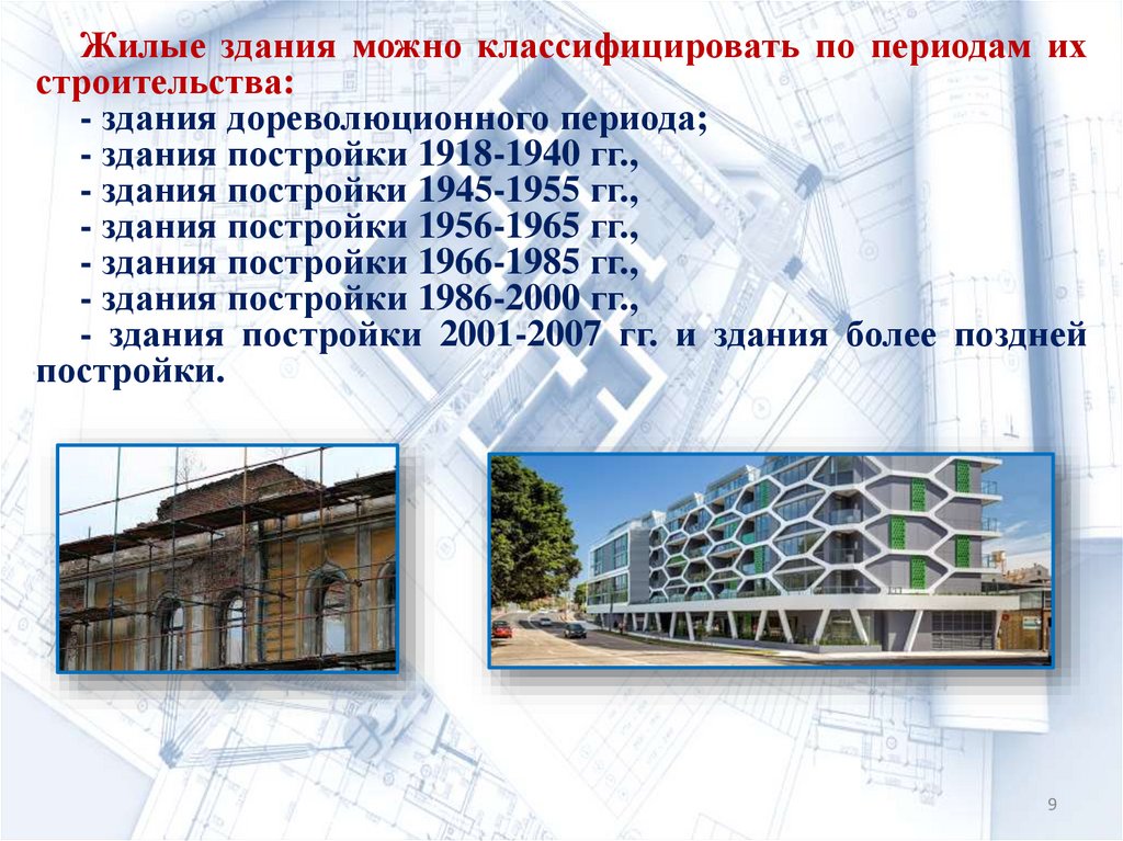 В зависимости от технического состояния планировочных,конструктивных и инженерных систем выбирают тип