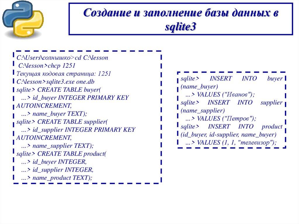 Создание и заполнение базы данных вsqlite3