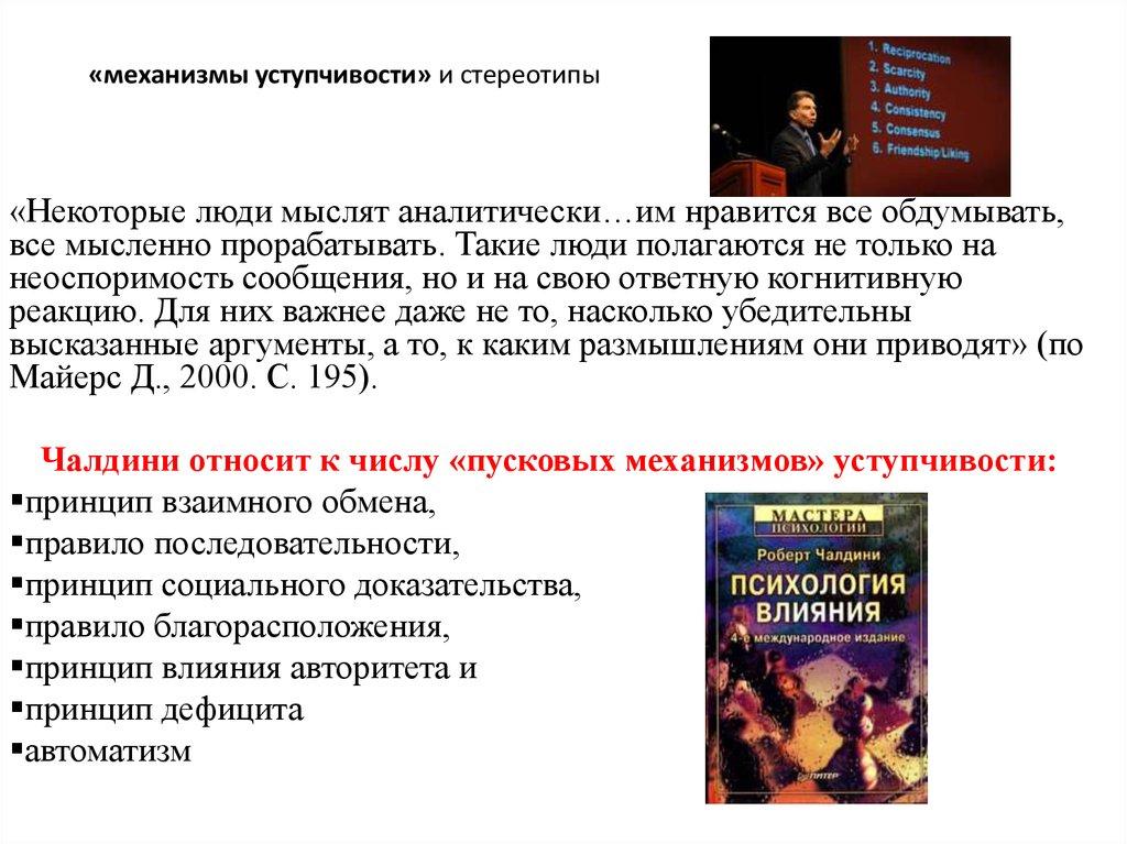 Чалдини относит к числу «пусковых механизмов» уступчивости: