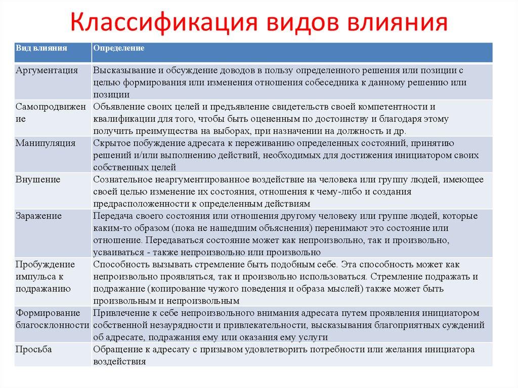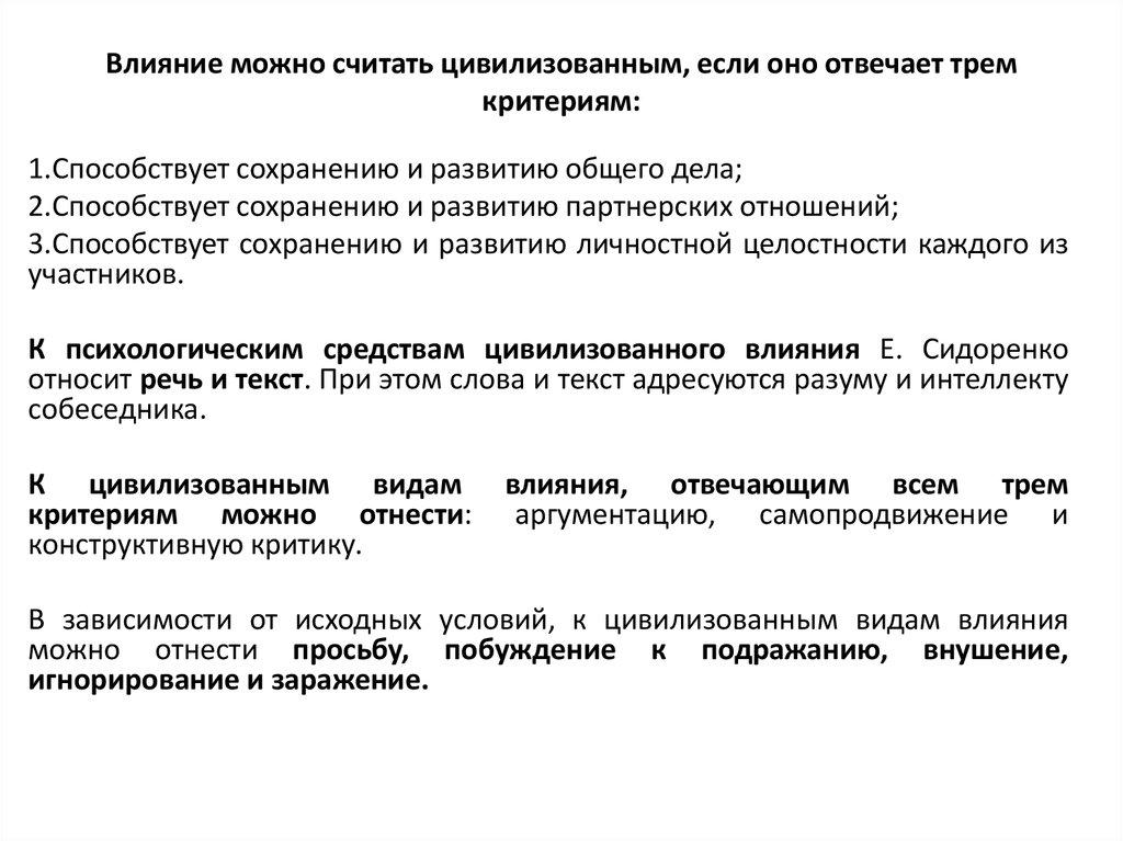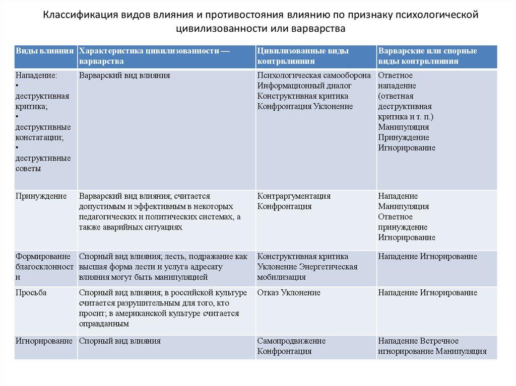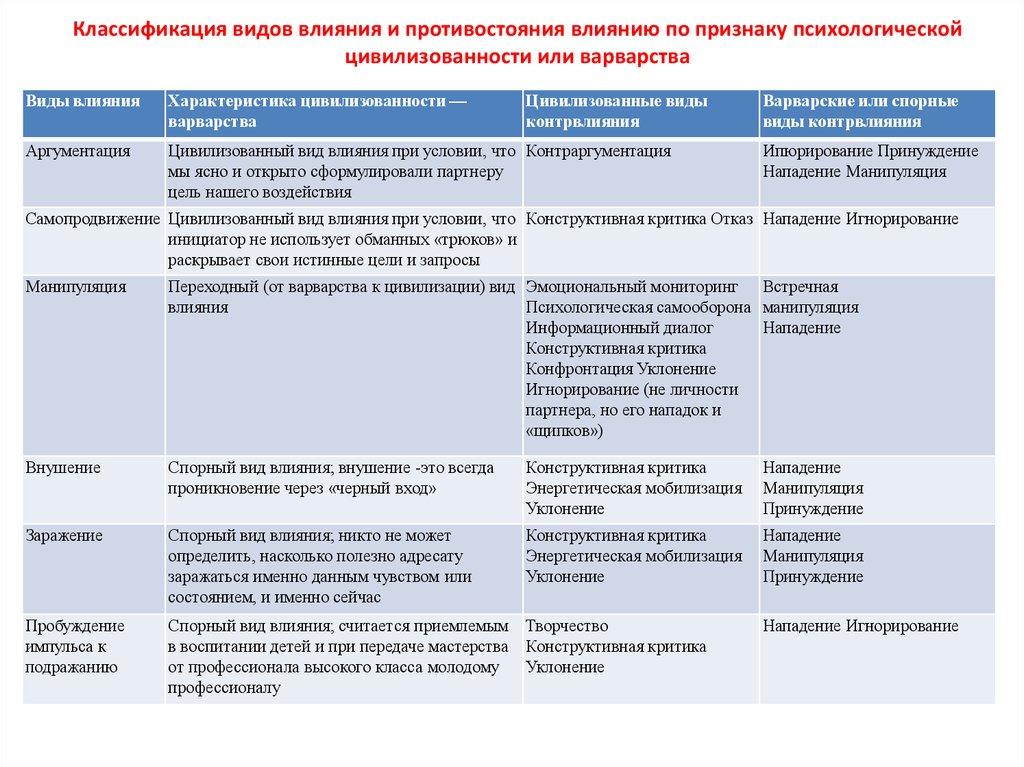 3. Виды влияния: цивилизованные виды влияния. Социально-психологические