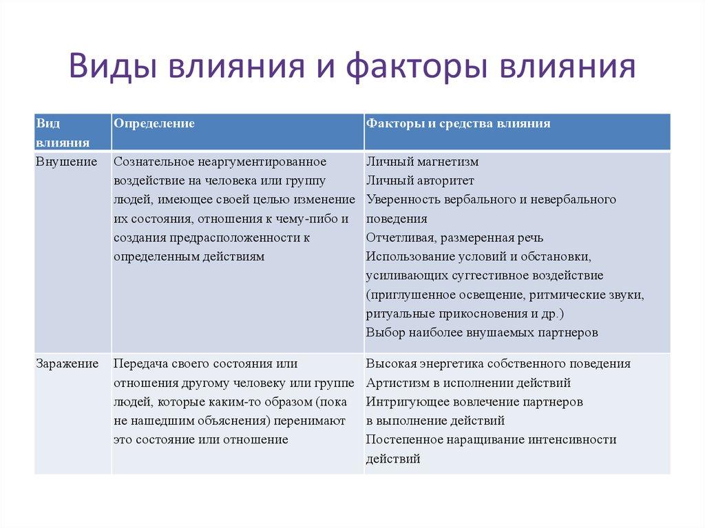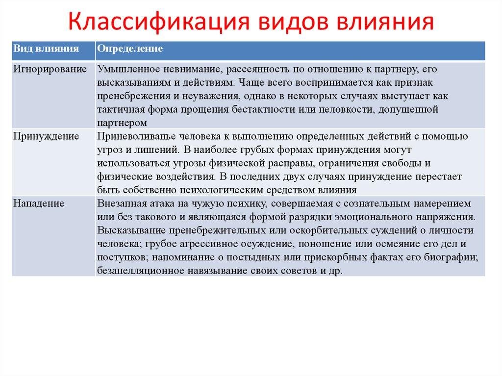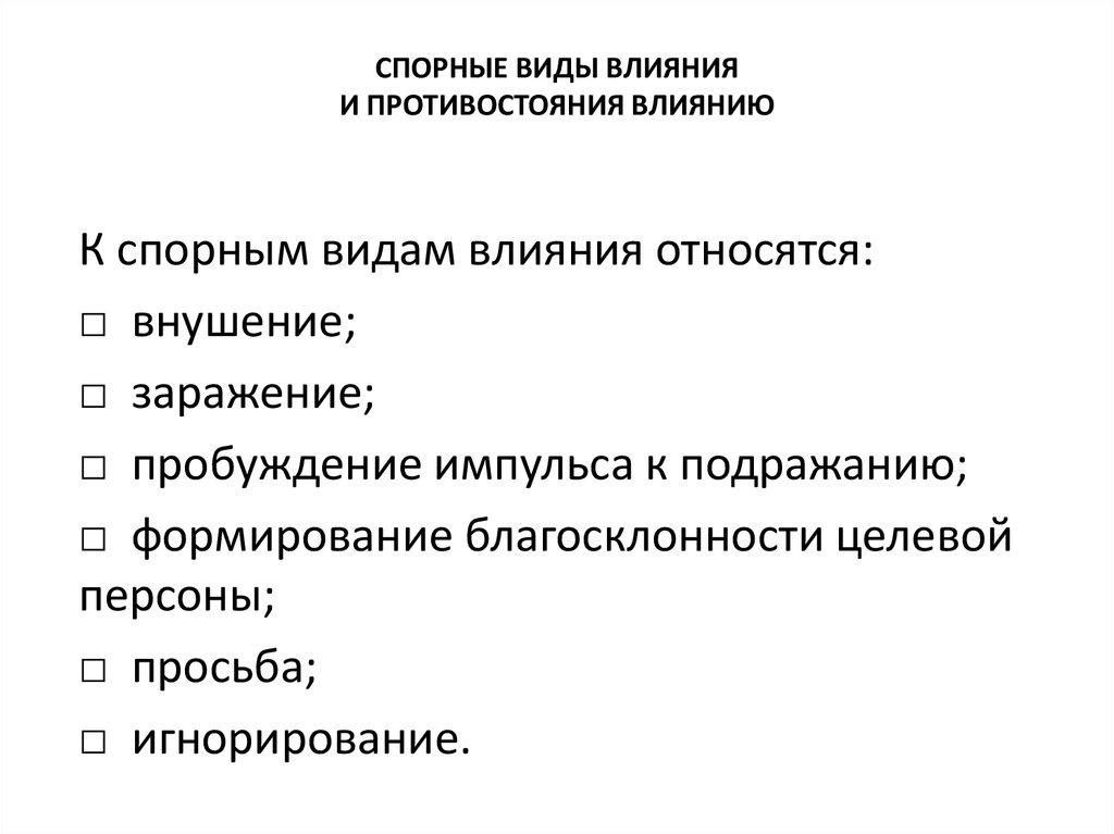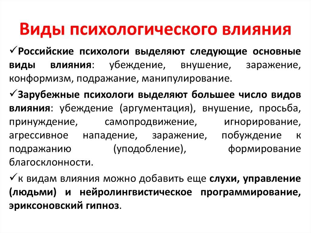 3. Виды влияния: цивилизованные виды влияния. Социально-психологические