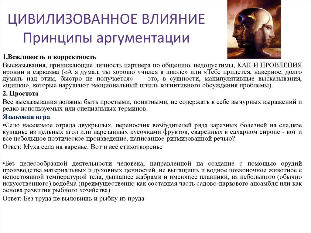 высказанные аргументы, а то, к каким размышлениям они приводят» (по