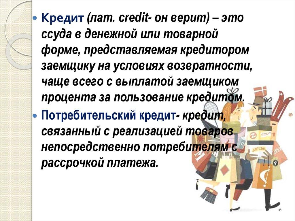 Кредит (лат. сredit- он верит) – этоссуда в денежной или товарной