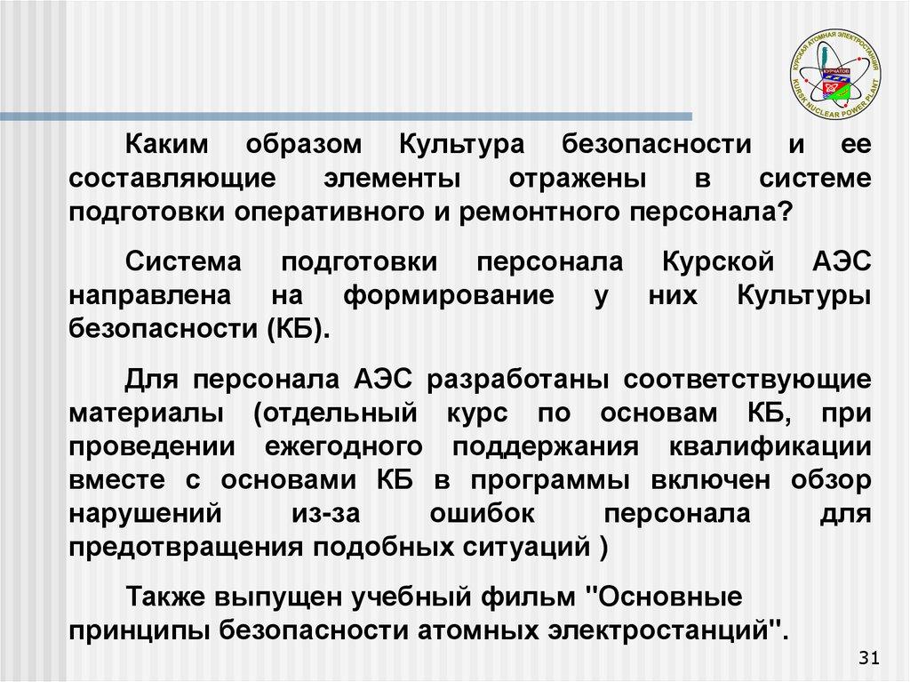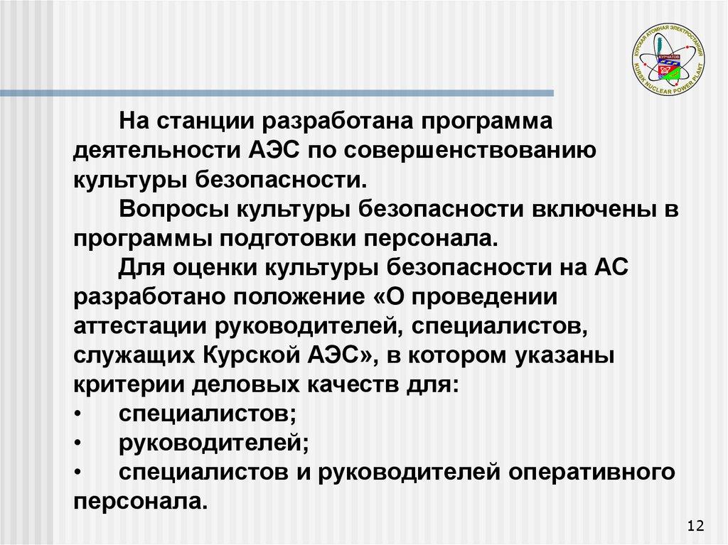 и поддержании квалификации персонала Курской АЭС.