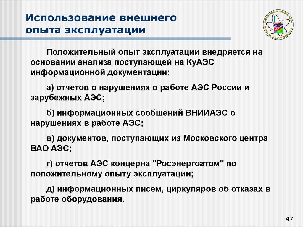 положительному опыту эксплуатации;