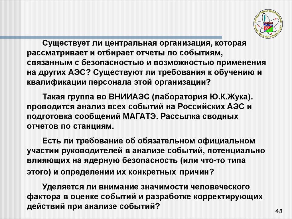 проводится анализ всех событий на Российских АЭС и