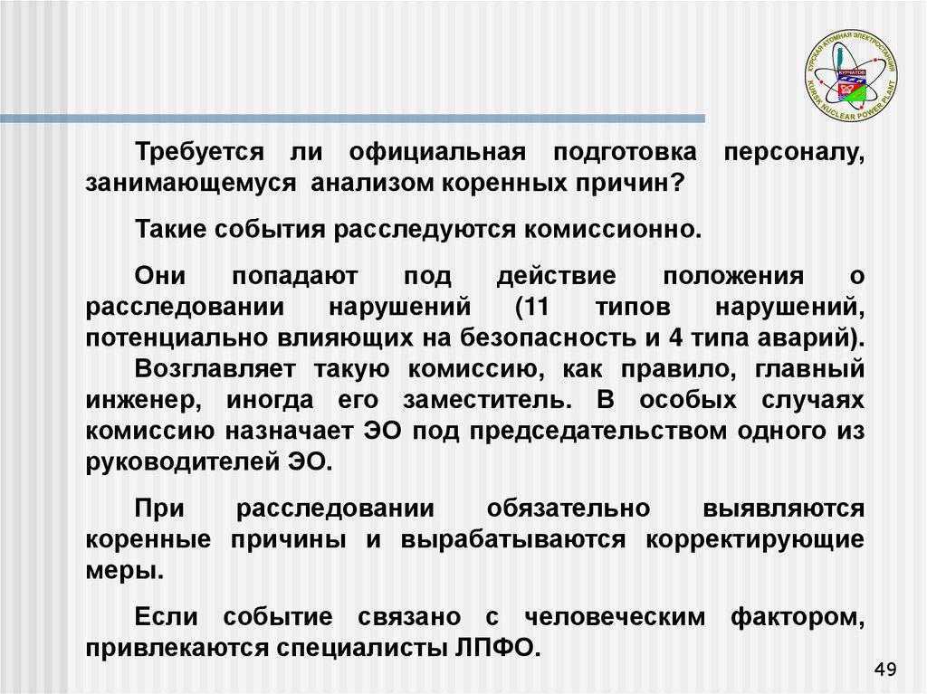 анализу непосредственных и коренных причин..»