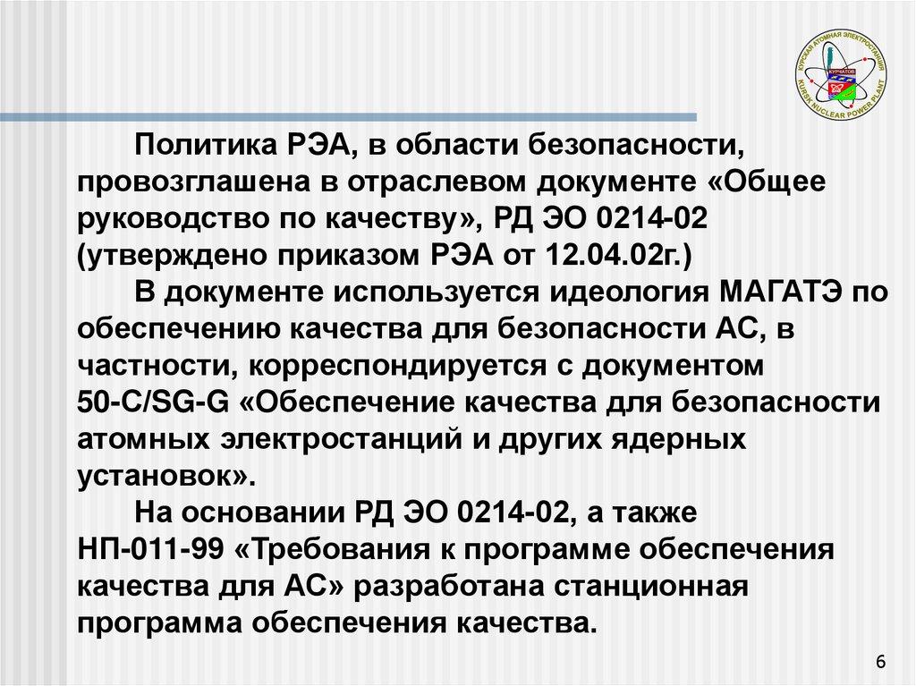руководство по качеству», РД ЭО 0214-02